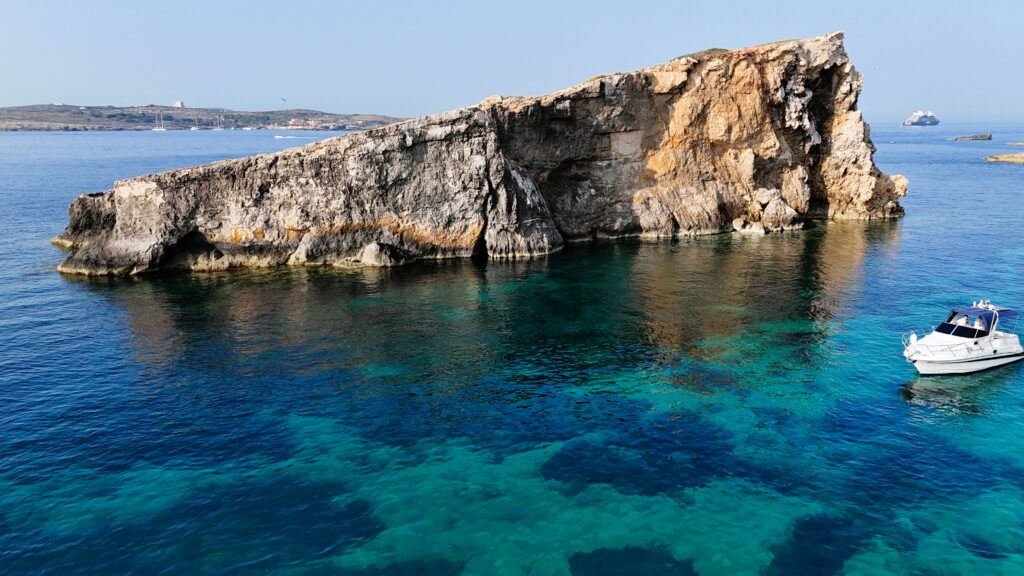 Rising boldly from the crystal-clear waters off Gozo’s southeastern coast near Qala, Tal-Ħalfa Rock is a must-see for sea lovers and adventure seekers. Though not a typical beach, this striking offshore formation is a favourite stop for boat charters thanks to its dramatic scenery, vibrant marine life, and peaceful surroundings. Best explored by boat or as part of a coastal cruise, it’s the perfect spot for snorkeling, diving, and capturing stunning seaside photos away from the crowds.