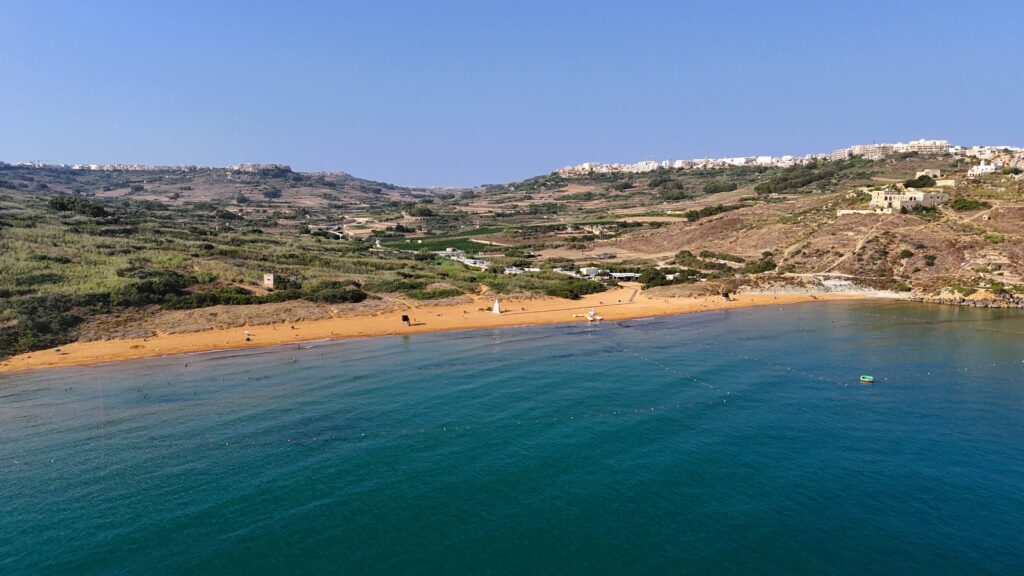 Located near the village of Xagħra, in the north-central Gozo, Ramla Bay (Ramla l-Ħamra) is the island’s most celebrated beach, and for good reason. Its vast stretch of golden-red sand, crystal-clear shallow waters, and breathtaking coastal views create the perfect setting for a day in the sun. Ramla is ideal for families, couples, and beach lovers looking to relax, swim, and soak up the vibrant Gozitan atmosphere.