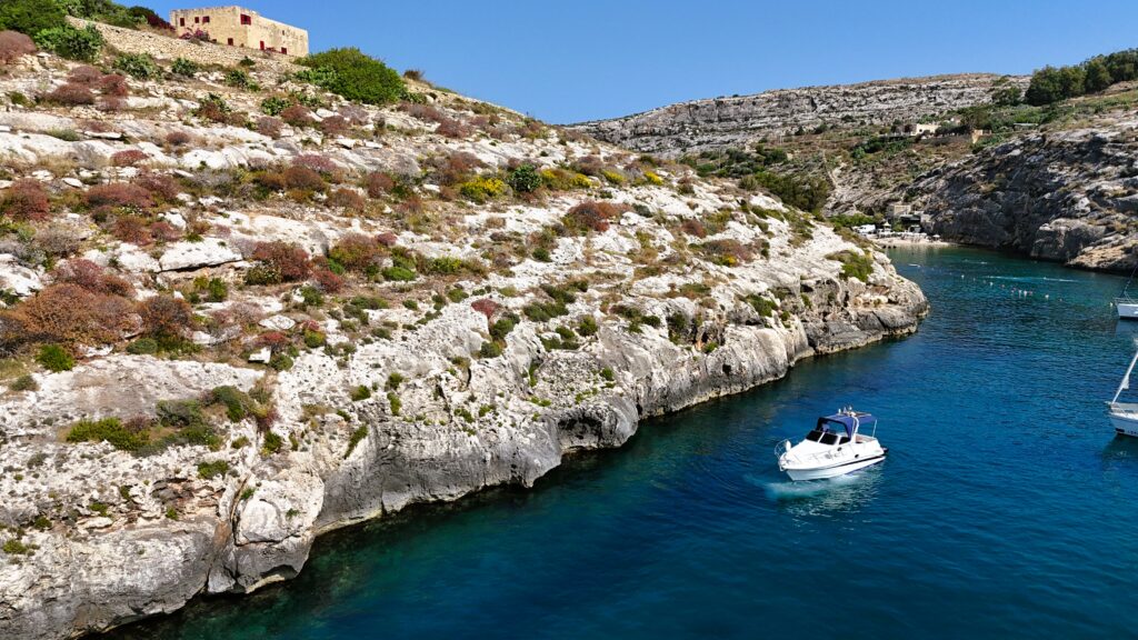 Tucked between Xewkija and Sannat on Gozo’s stunning south coast, Mġarr ix-Xini is a secluded inlet that feels like a secret escape. Surrounded by towering cliffs and untouched natural beauty, this narrow bay is a haven for snorkelers, divers, and nature lovers. Its crystal-clear waters and underwater caves make it a top spot for marine exploration. Famously featured in the film By the Sea starring Angelina Jolie and Brad Pitt, Mġarr ix-Xini offers a peaceful, cinematic setting perfect for relaxation, adventure, and cliffside discovery.